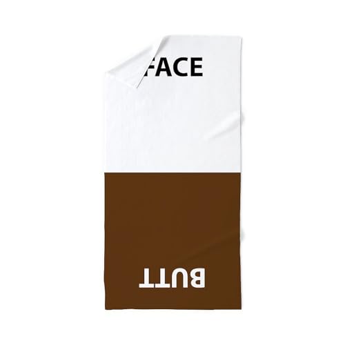 The ingenious Butt-Face Towel brings sanitary sanity back into your bathroom. It’s a quality, terry cloth bath towel with two clearly labeled ends. As you can see in the photos, one half is white with the word “FACE” boldly embroidered. The other end is brown (good color choice) and is embroidered with the word “BUTT.”
